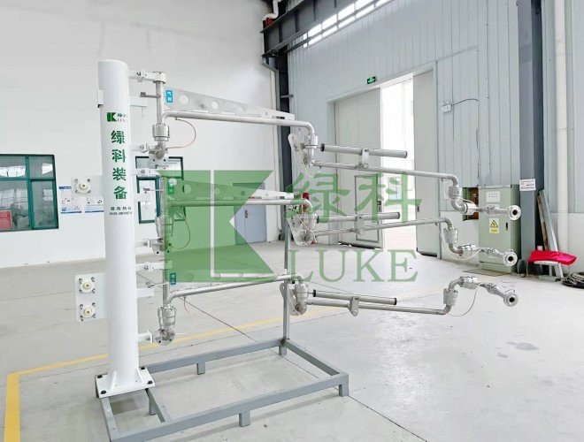 無(wú)氮?dú)獗Wo(hù)裝置裝卸車臂:裝卸車臂由液相臂、氣相臂、增壓臂組成。卸車臂的轉(zhuǎn)向閥采用特殊密封,保證空氣不會(huì)進(jìn)入轉(zhuǎn)向閥的內(nèi)部,避免了出現(xiàn)轉(zhuǎn)向閥結(jié)冰無(wú)法轉(zhuǎn)動(dòng)的現(xiàn)象。該裝卸車臂不用氮?dú)獗Wo(hù)系統(tǒng),減少了設(shè)備投資和后期運(yùn)行過(guò)程中購(gòu)買氮?dú)庀牡馁M(fèi)用。